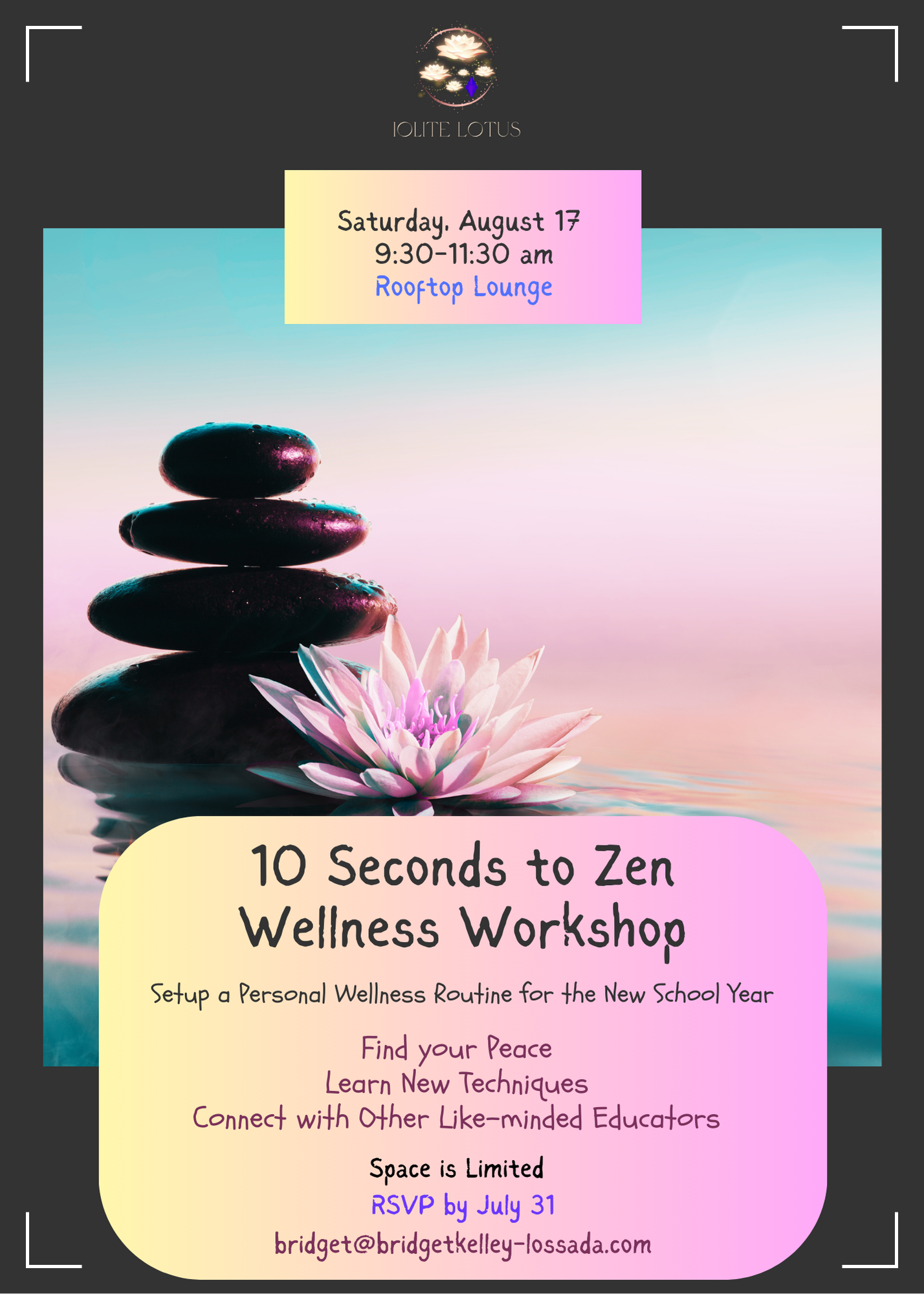- If you live in the LA area and are an educator of any kind, consider signing up for my in-person 10 Seconds to Zen Wellness workshop (August 17- 9:30-11:30 am). Space is limited. Information is linked above.